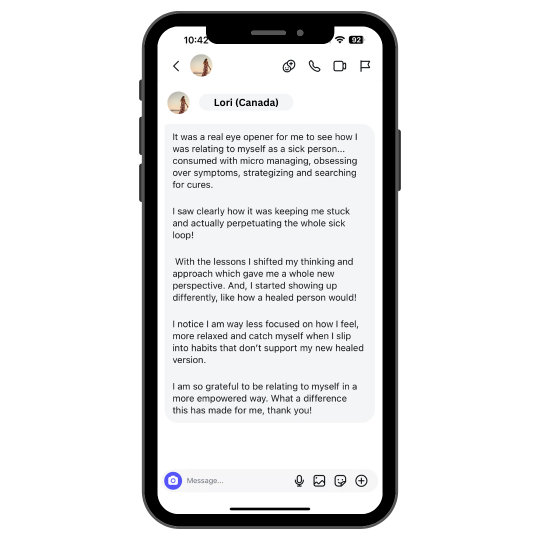 1.2 The content is educational in nature and aims to support emotional, mental, and spiritual healing from chronic illness. It is based on personal experience and client outcomes, alongside mindset, energy, and emotional release principles. This offering is not a substitute for medical or psychological treatment.